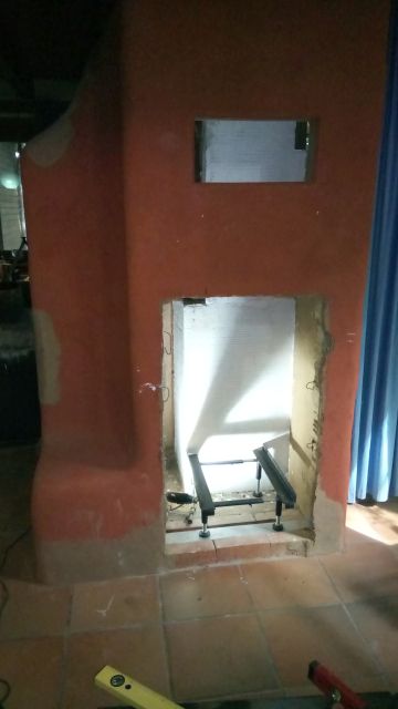 Vorhandenem Heizeinsatz Bruderus Logaflamm HLG 426B einbauen an den vorhandenen Schornstein anschliessen.