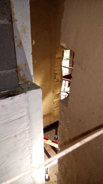 Kernbohrung in Schornstein für Wandmuffe d=173 mm herstellen und vorhandenen Anschluss schliessen.